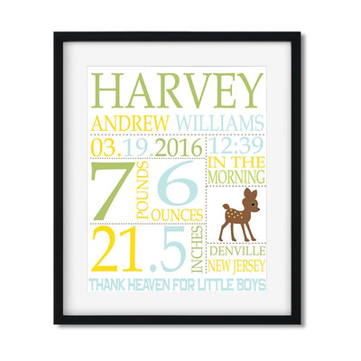 Bambi - Baby Boy Stats - Art Print - Netties Expressions Prints