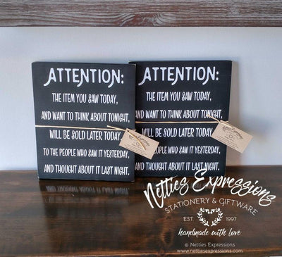 Attention the item you - Retail Rustic Wood Sign - Netties Expressions