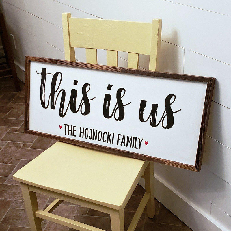 This handmade rustic wooden framed sign is made from 3/4" GIS (good-one-side plywood) and measures approximately 12"W X 30"L X 0.75"D. The frame is 0.5" wide and adds 0.5" on to each side of the sign.