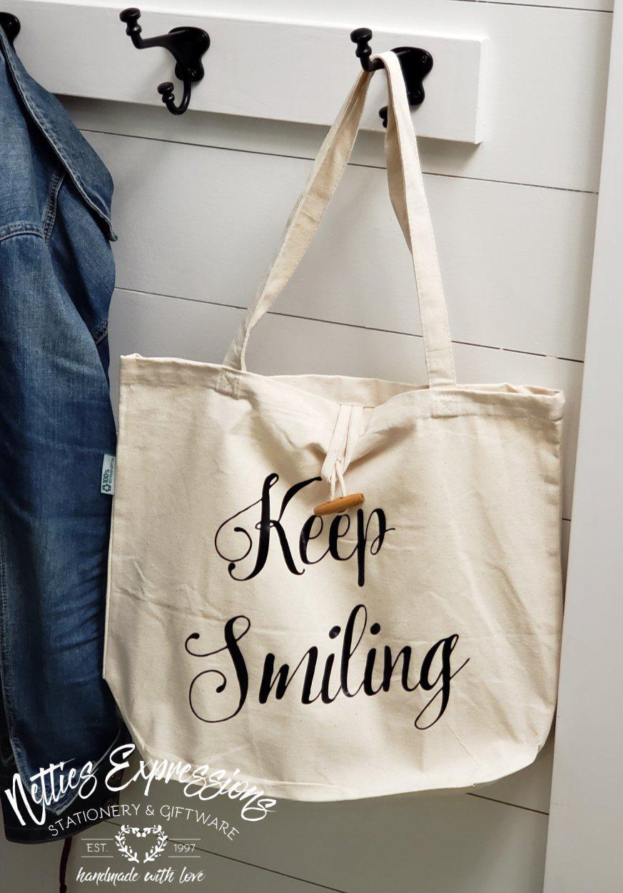 This fashionable 100% recycled 10oz cotton canvas bag makes a lovely gift or works wonderful for carrying purchases, books, etc. With stores cutting back on using plastic bags, it's nice to have pretty bags to use when shopping.