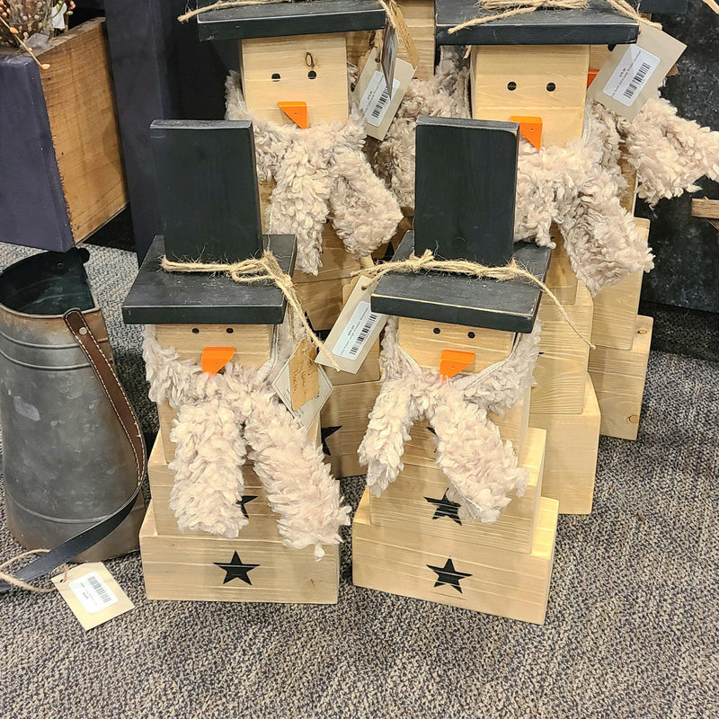 The wooden snowmen measure approximately 21" (high) x 8" (wide).