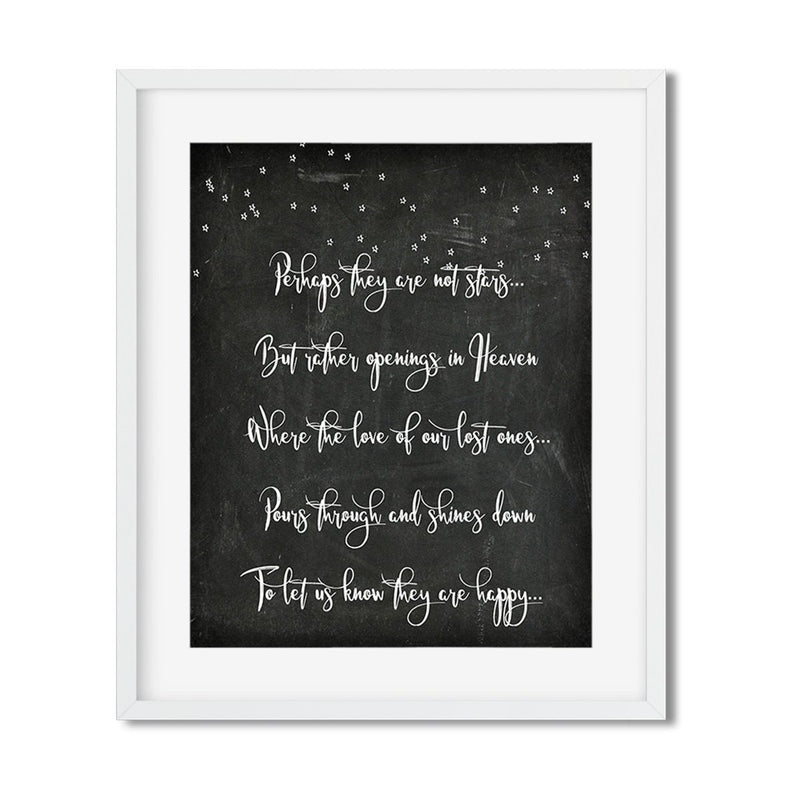 Losing a loved one is never easy...This "stars" print has such a comforting message which is what we all desire when we face a loss. This print is perfect for framing and hanging on your wall or giving to someone who has faced a losing a loved one.