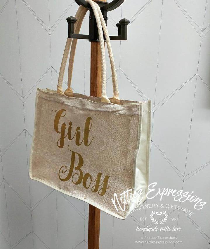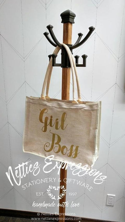 This bag is available in a cotton canvas bag or a jute fibre cotton bag.