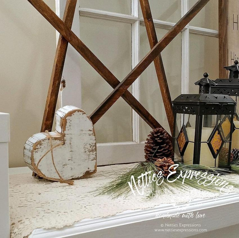 This large rustic chunky wooden heart was an inspiration which was tested out during lunch hour. Sometimes those lunch hour inspirations result in the cutest things.