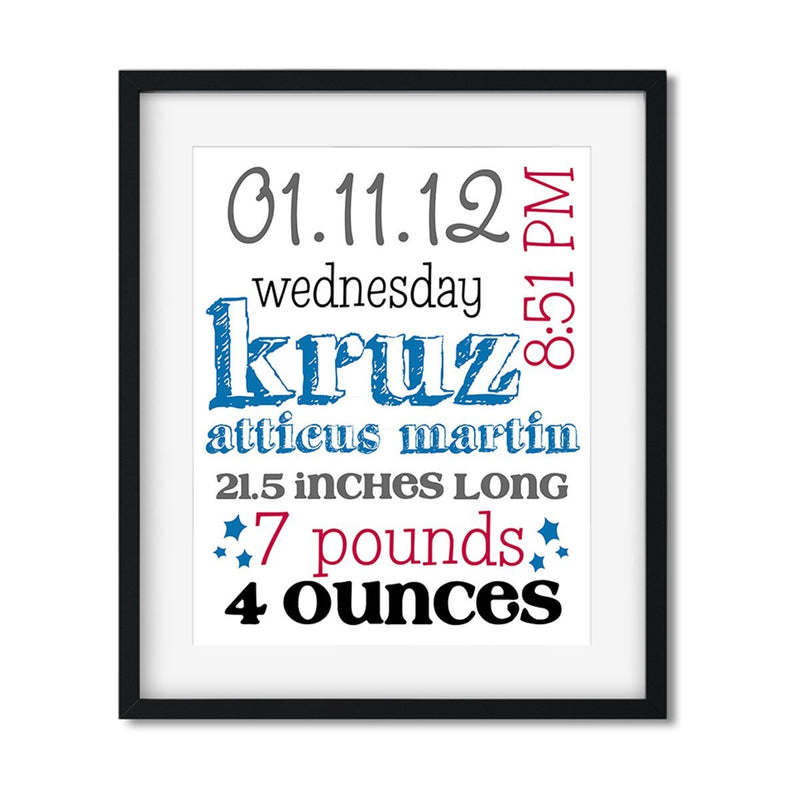 8x10 Custom Baby Boy Stats Art Print - Style E