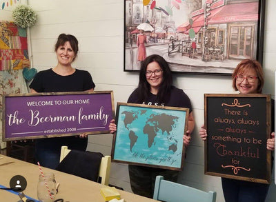There is no vinyl on this wall hanging. This sign is hand painted with FAT Paint, distressed and finished with a wood sealer. Hanging hardware is attached to the back making this sign ready to hanging.