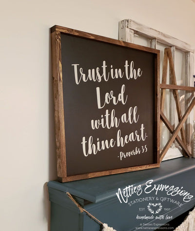 It's amazing how one saying can stay with a person through the day. This sign will make you stop and think and give you courage to go on. This handmade "Trust in the Lord" sign is a perfect reminder when going through hard times. Hang this in your house or give to a friend.